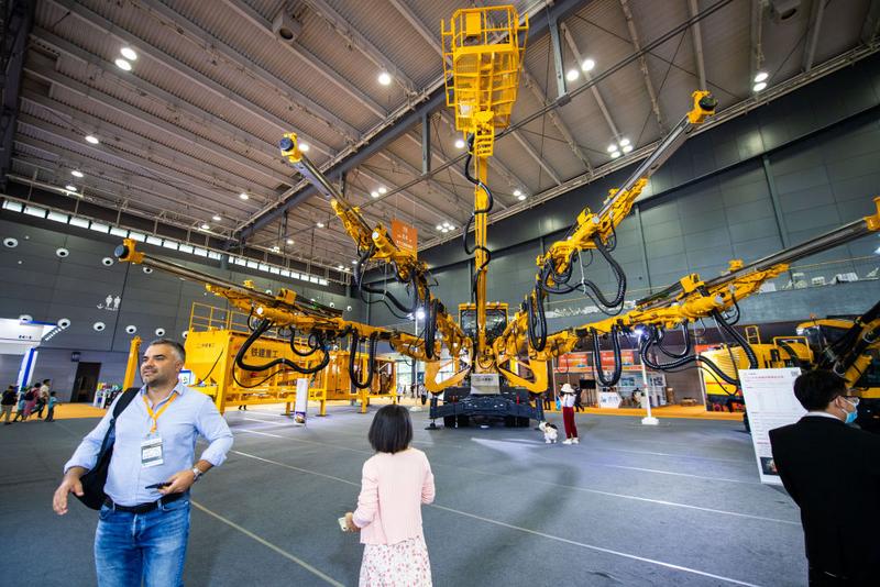 在长沙国际会展中心,观众在第三届长沙国际工程机械展览会参观展出的工程机械设备(5月15日摄)。新华社记者 陈思汗 摄